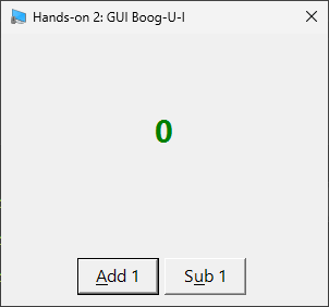In our example here, pressing Alt + A will activate the Add button, and Alt + U will activate the Sub button. This doesn't do anything now, but we'll be adding logic later to make these buttons functional.